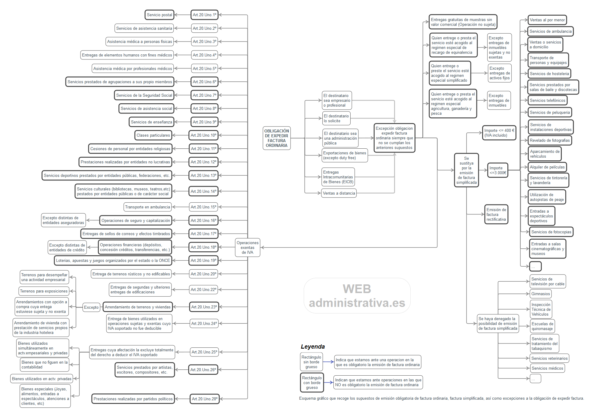 Esquema gráfico de emisión obligatoria de factura ordinaria, factura simplificada, así como excepciones a la obligación de expedir factura.