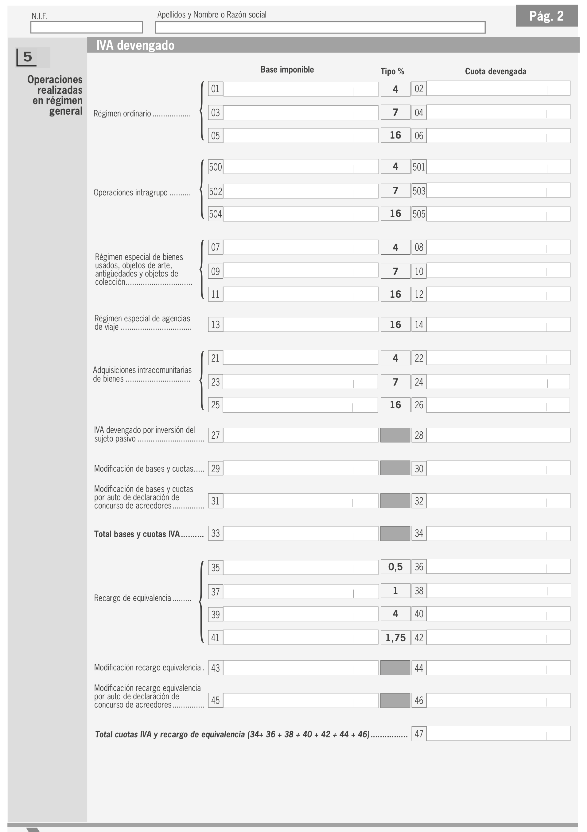 En el régimen general de IVA se utilizan principalmente dos modelos diferentes: