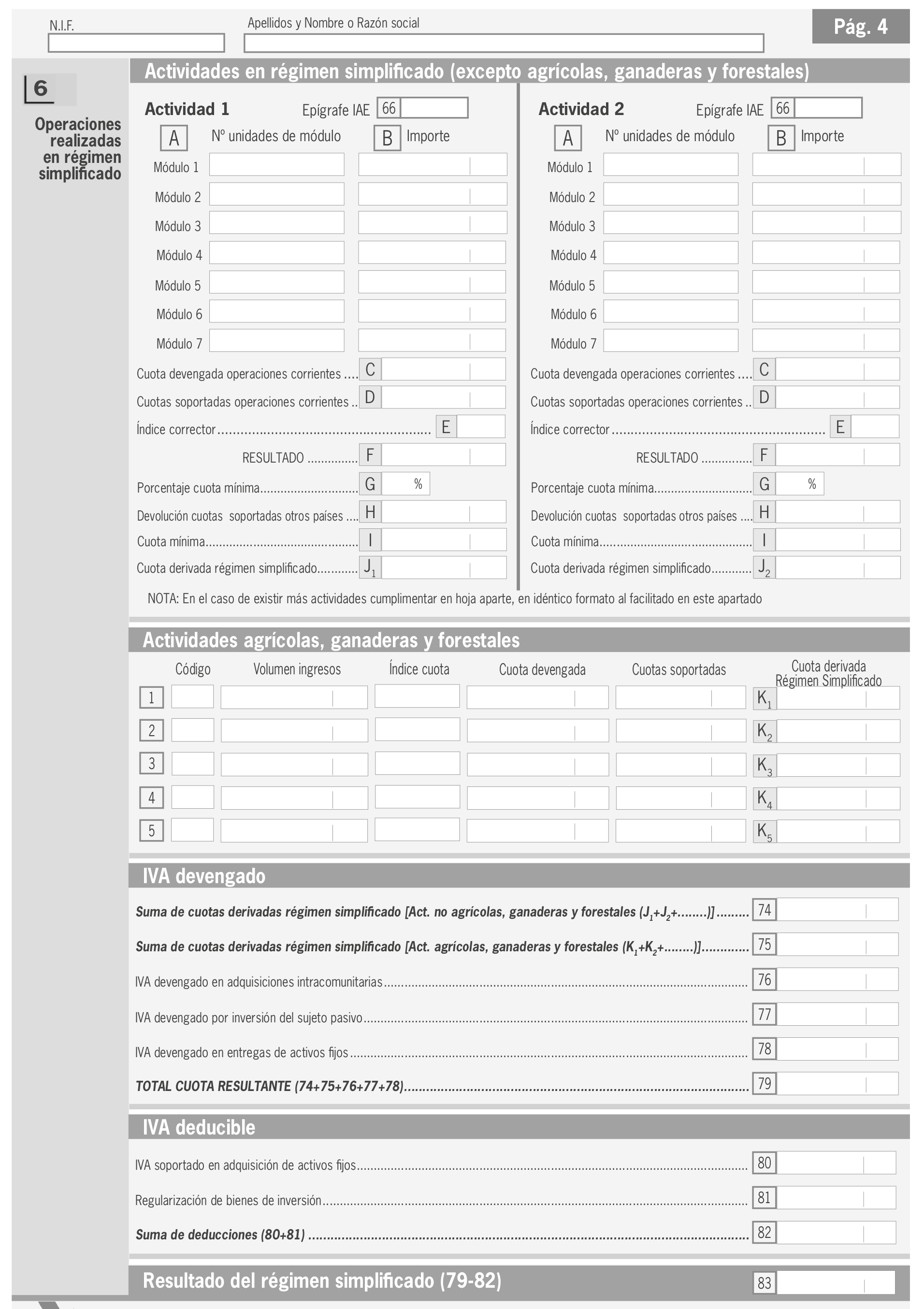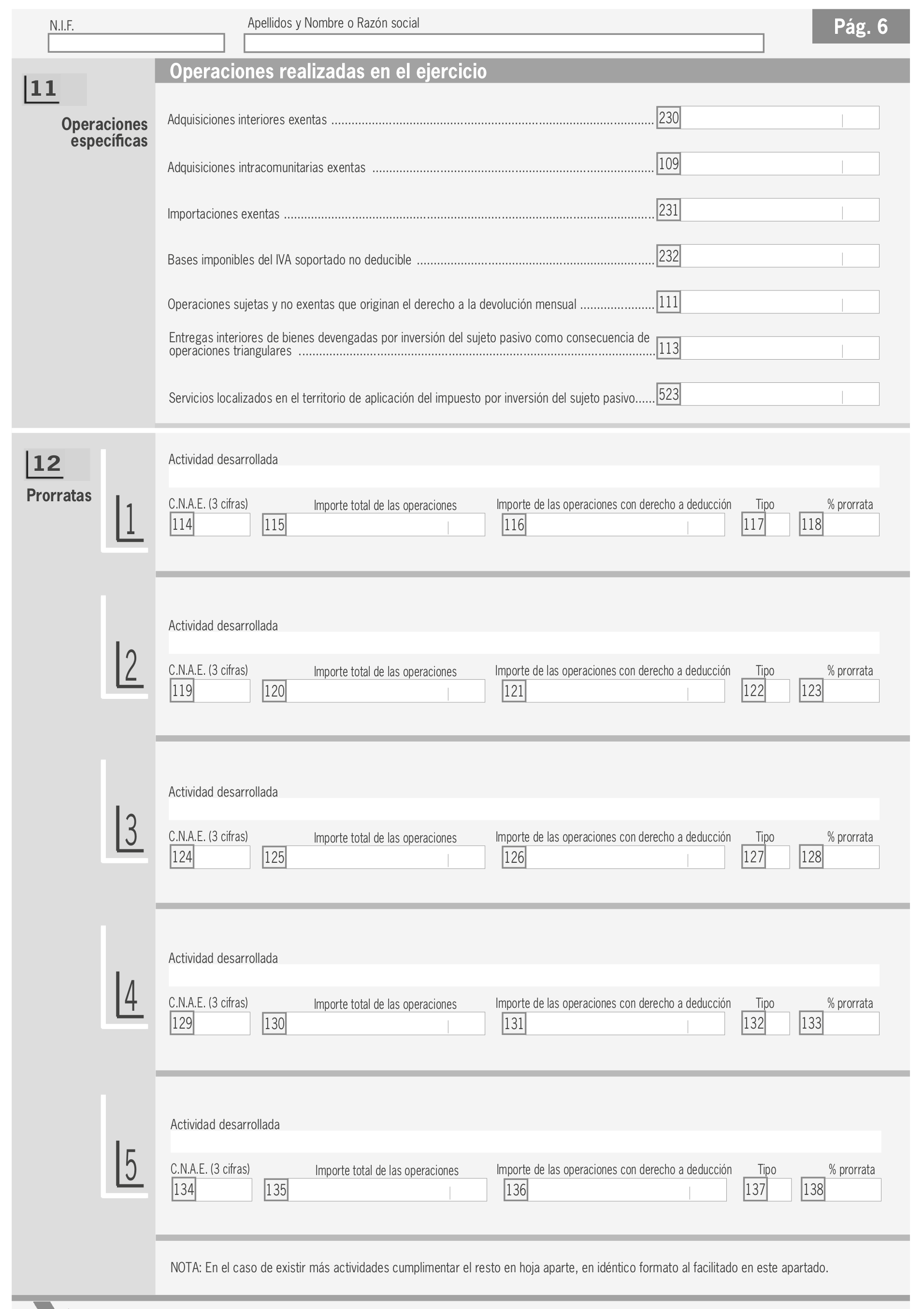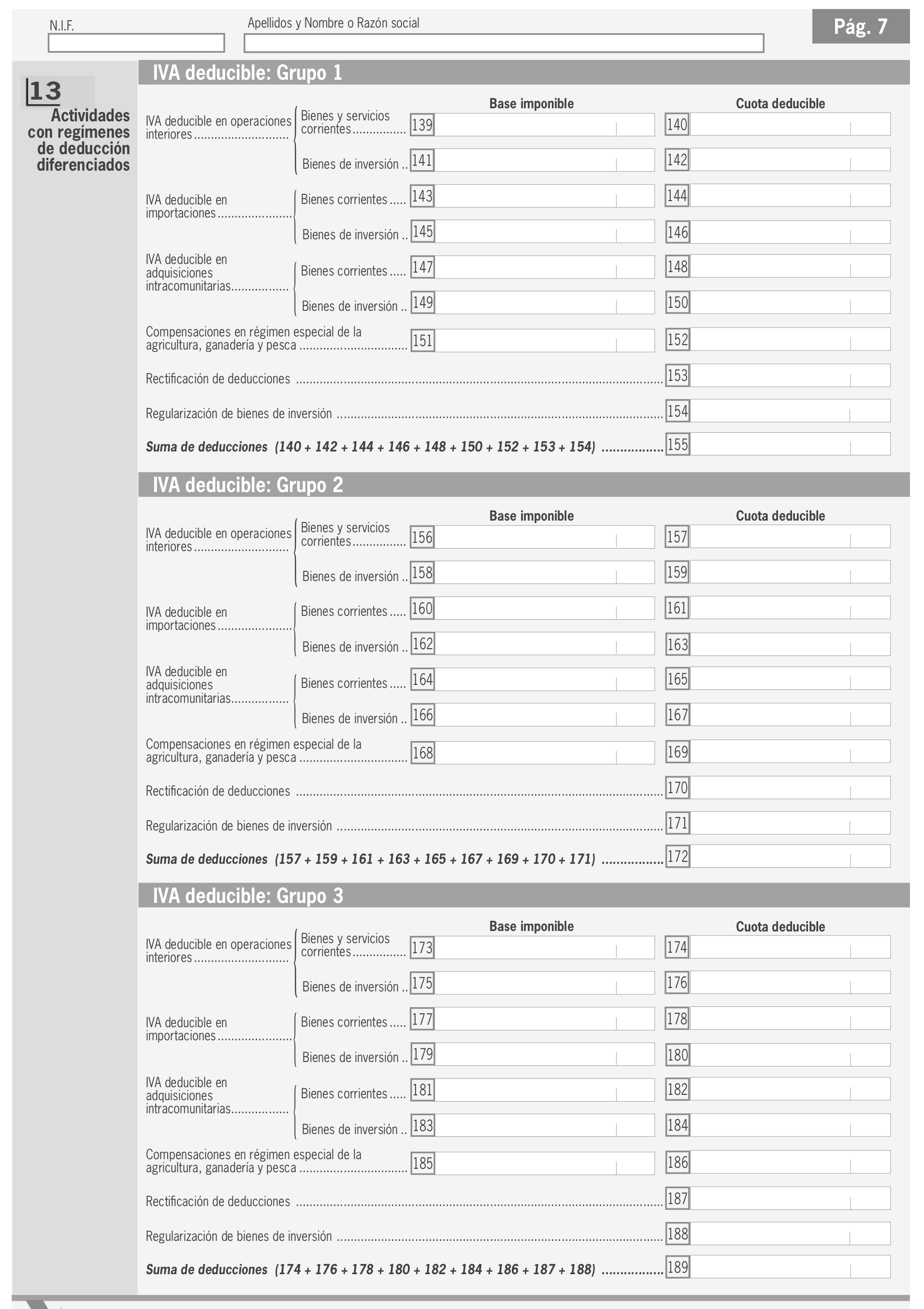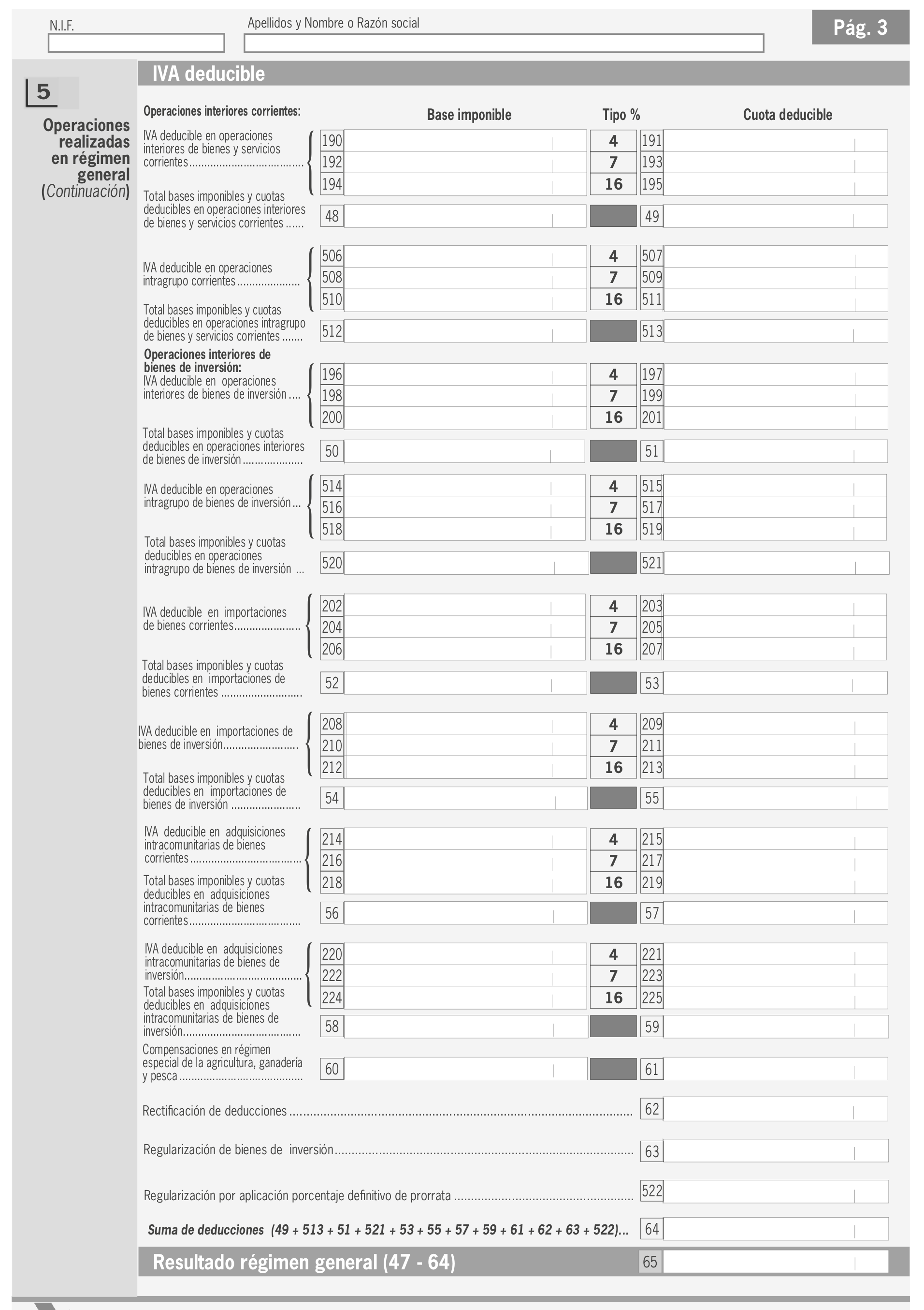 En el modelo se debe distinguir entre IVA soportado en operaciones corrientes y en bienes de inversión.