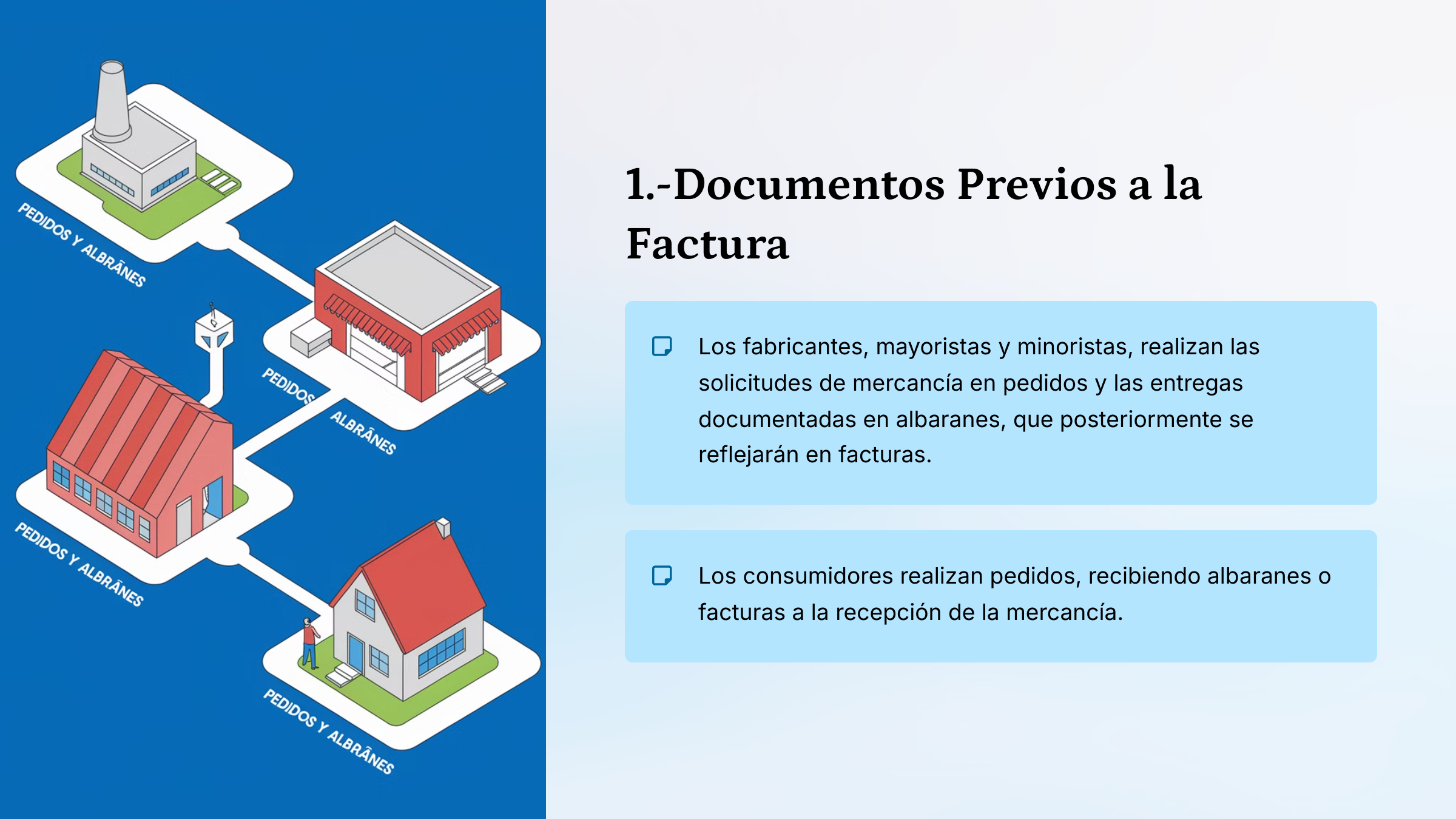 Vistos los documentos previos a la emisión de una factura, se va a tratar de una forma más amplia la factura en la compra-venta de productos objeto de la actividad principal de la empresa, es decir, en el caso de un supermercado, sería la facturación relacionada con la alimentación o bebidas de dicho supermercado, o en el caso de un concesionario de vehículos, sería la facturación por la compra-venta de vehículos.