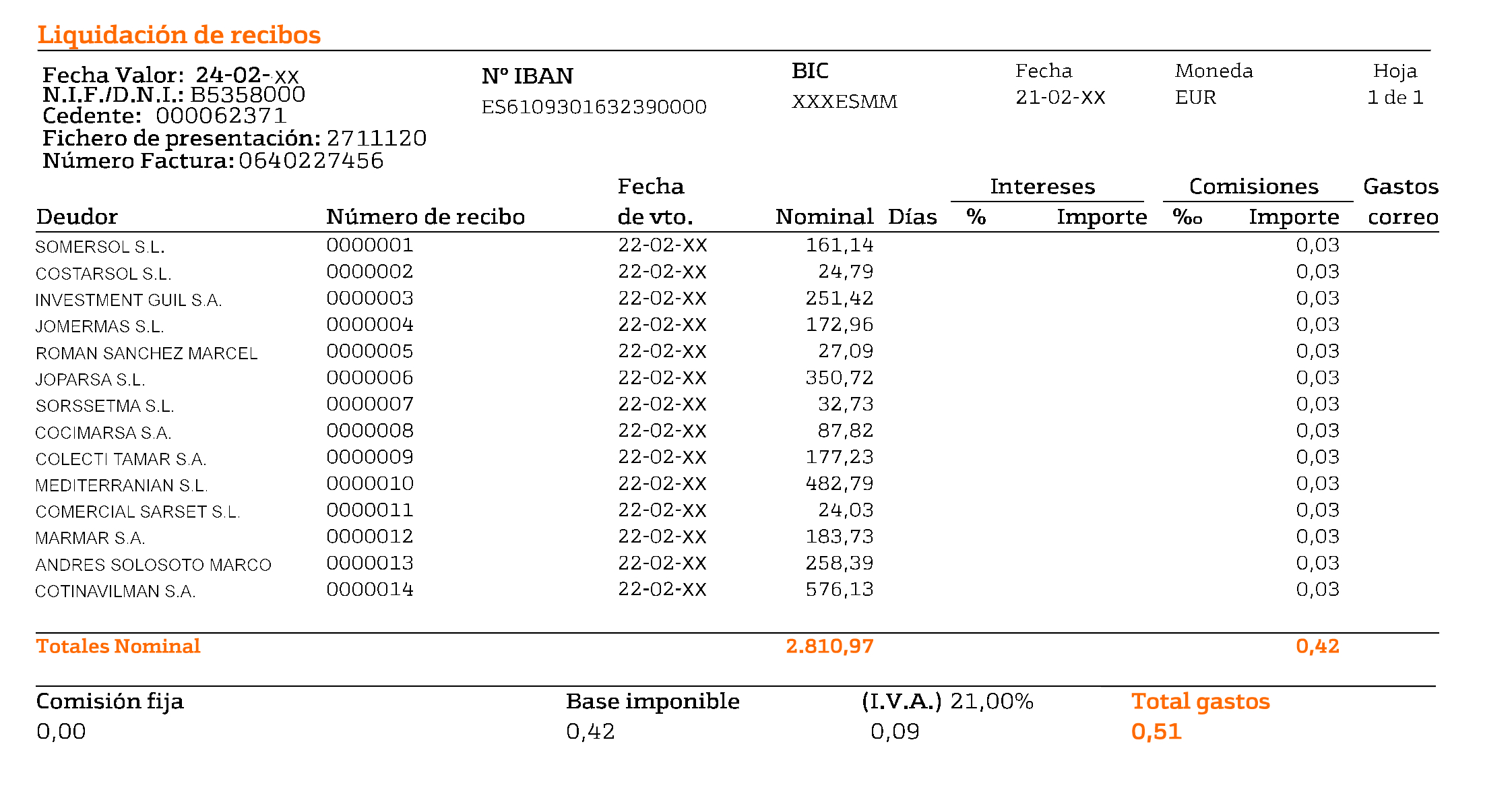 Por ejemplo, supongamos un fabricante de electrodomésticos que cede parte del crédito de sus clientes documentado en pagarés, letras de cambio, créditos documentarios de exportación, etc. a una entidad financiera a cambio de recibir anticipadamente dicho importe y dónde la entidad financiera asumiría todo el riesgo en caso de impago. La operación descrita se define como "forfaiting" y crea al cedente de los efectos comerciales un sector diferenciado cuyo IVA soportado será no deducible, ya que la cesión de créditos incorporados a un título (pagarés, letras del tesoro, etc.) que se presenta a una entidad para que anticipe los fondos es una operación sujeta y exenta según el artículo 20.Uno.18º e) de la ley 37/1992 de IVA.