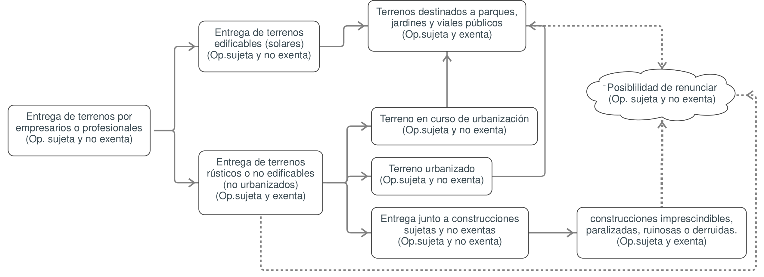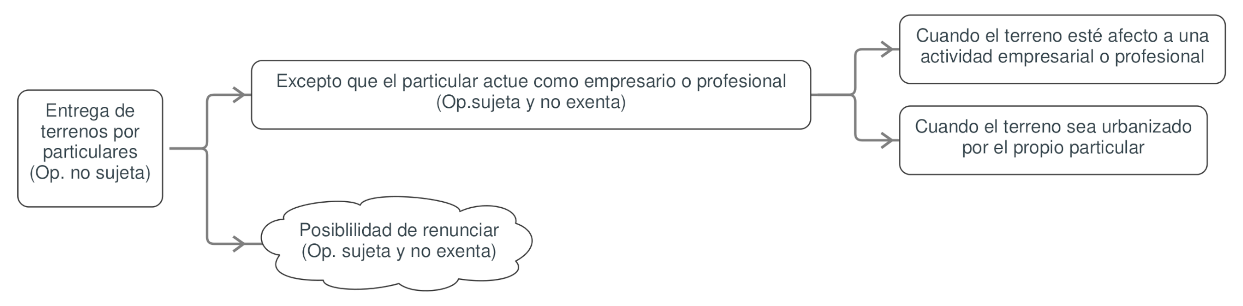 Recordando que el arrendamiento de un terreno le da a su propietario la condición de empresario o profesional a efectos del IVA, si posteriormente dicho propietario decidiera vender el terreno no edificable estaríamos ante una venta sujeta y exenta por el artículo 20.Uno.20º, excepto que el comprador pueda optar por solicitar la renuncia a la exención y el vendedor la acepte, quedando así la operación sujeta y no exenta.