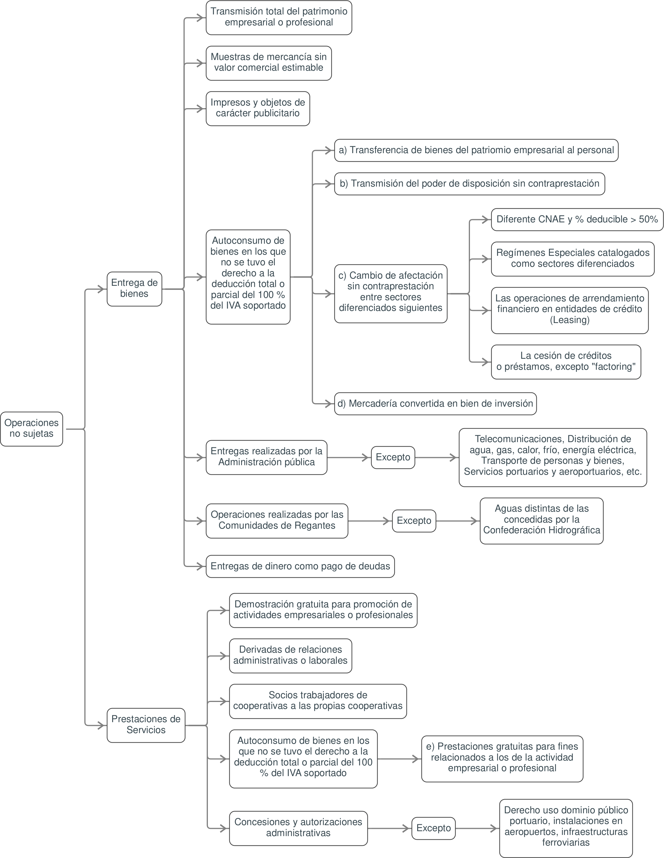 En este caso, la realización de operaciones no sujetas no afecta a la deducibilidad del IVA soportado al no realizarse el hecho imponible, quedando dichas operaciones fuera del ámbito del IVA.