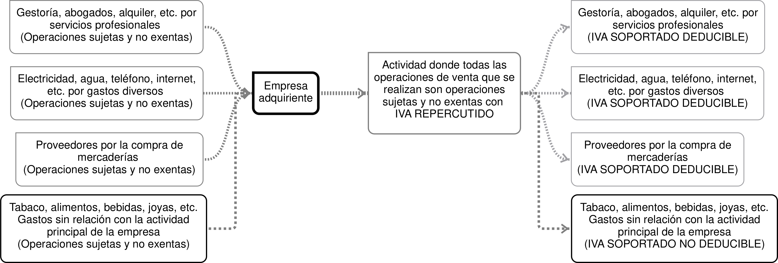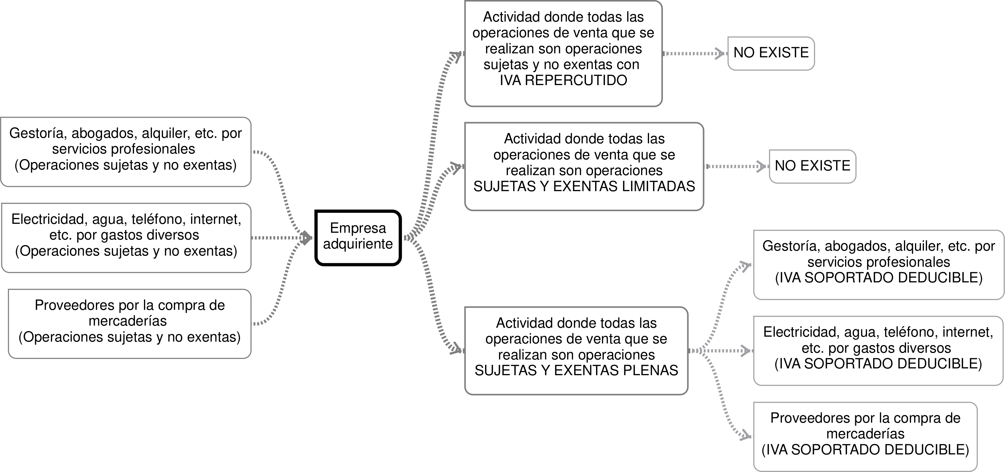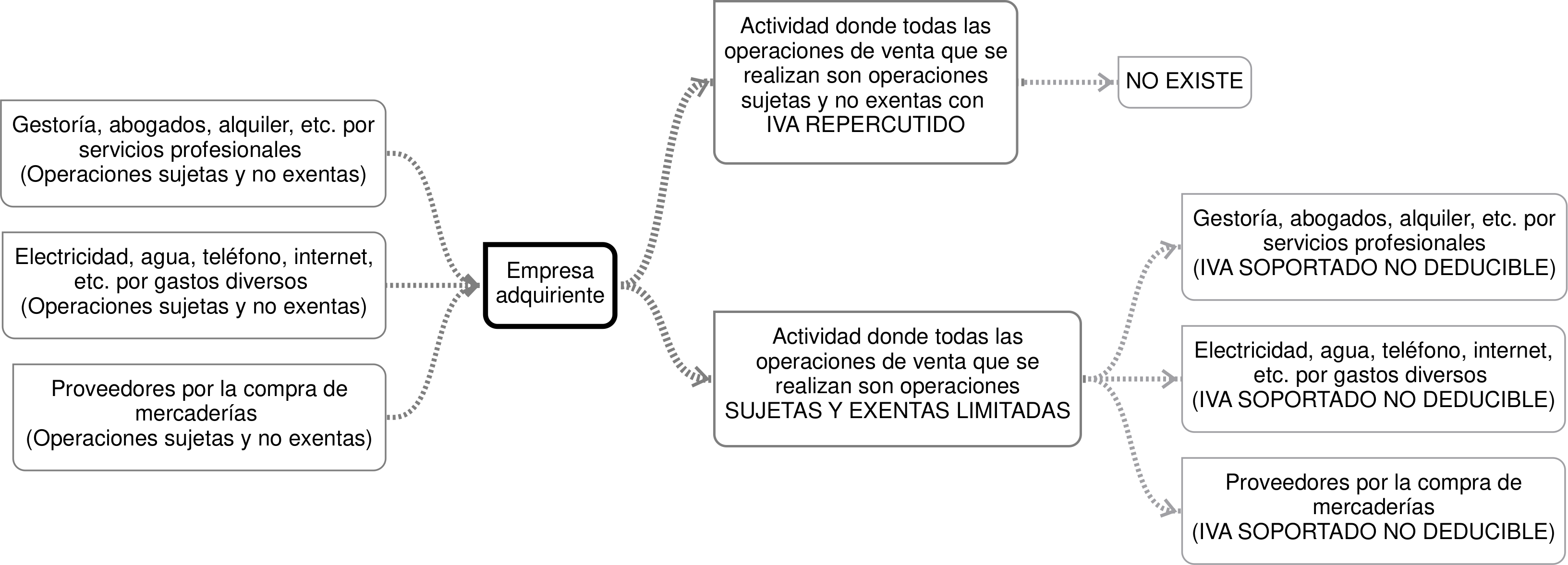 Por ejemplo, si se desempeña una actividad en la que todas las operaciones con los clientes están sujetas y exentas del cobro de IVA, como podría ser el caso de un servicio médico, éste no estará obligado al cobro del IVA repercutido, pero tampoco tendrá derecho a deducirse el IVA soportado en la adquisición de las compras y gastos necesarios para el desempeño de su actividad, como por ejemplo, compra de material médico, de un ordenador, una mesa, una camilla, luz, agua, etc.